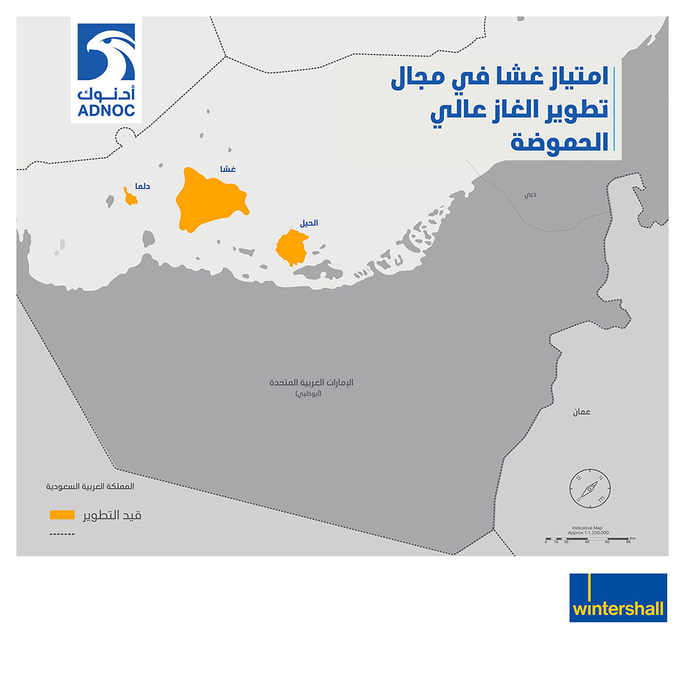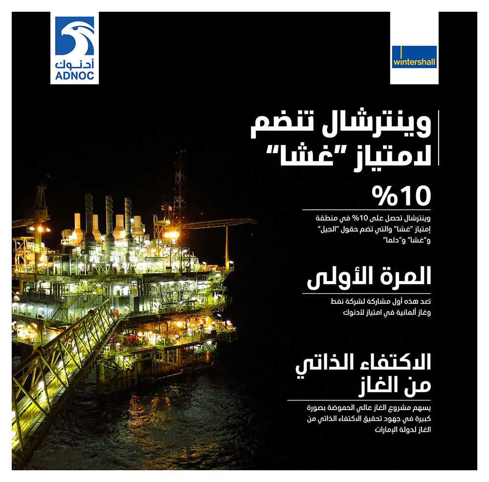 وبهذه الاتفاقية تنضم "وينترشال"، أكبر شركة ألمانية لإنتاج النفط الخام والغاز الطبيعي والمملوكة بالكامل لـ "باسف"، أكبر شركة كيماويات في العالم من حيث المبيعات، إلى شركاء أدنوك في هذا المشروع وذلك إلى جانب "إيني" الإيطالية التي كانت قد حصلت على حصة 25% في امتياز "غشا" بموجب اتفاقية تم توقيعها مطلع هذا الشهر. وتعد الاتفاقية مع "وينترشال" أول مشاركة لشركة نفط وغاز ألمانية في أحد امتيازات أبوظبي، كما تتماشى مع برنامج مبادرات أدنوك لتوسيع وتنويع الشراكات الاستراتيجية.