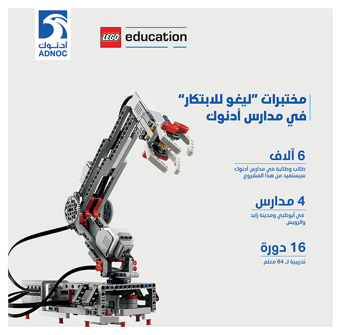 وتعد شراكة أدنوك مع "ليغو للتعليم" جزءاً من برنامجها المتكامل للمسؤولية المجتمعية، وهي تتماشى بشكلٍ وثيق مع التركيز الحكومي في دولة الإمارات على تطوير منهج تعليمي متنوع يستند إلى التفكير النقدي والعلوم والرياضيات والتكنولوجيا مثل الذكاء الاصطناعي ومنصات البيانات التنبؤية.