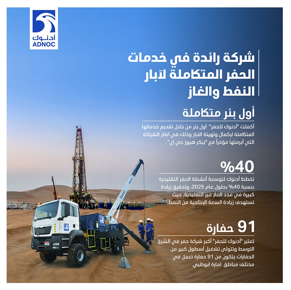 أدنوك للحفر تحقق إنجازاً كبيراً بإكمال أول بئر من خلال تقديم خدمات متكاملة في مجال حفر وتهيئة آبار النفط والغاز