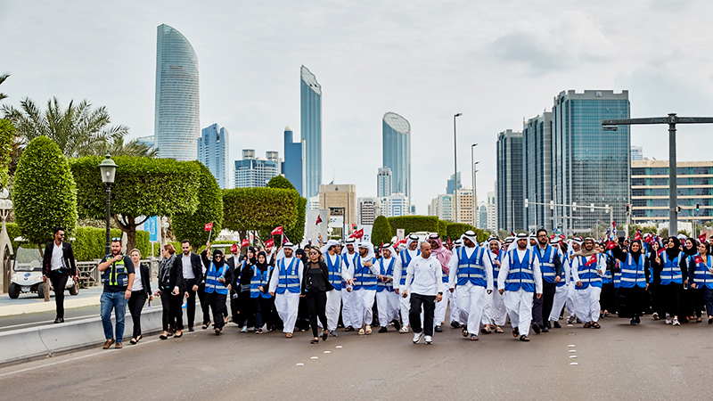 وقبيل احتفالية استقبال الشعلة، شارك أكثر من 3500 موظف من أدنوك ومجموعة شركاتها في مسيرة حمل الشعلة التي نظمتها أدنوك لنشر الوعي بحركة الأولمبياد الخاص، حيث بدأ حمل الشعلة من أمام مبنى شركة أدنوك البرية وانتهى عند صرح زايد المؤسس.