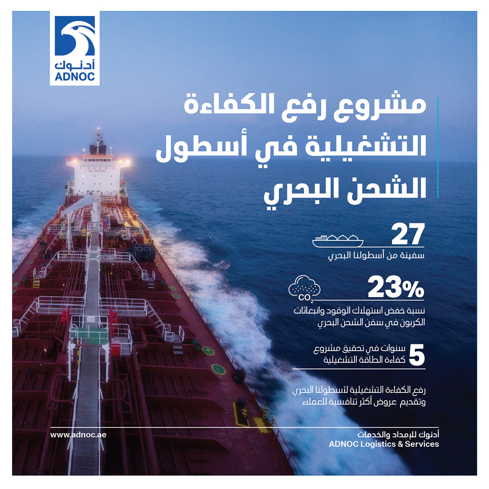 أبوظبي، 16 يناير 2019: أعلنت "أدنوك للإمداد والخدمات"، شركة الشحن البحري والخدمات اللوجستية التابعة لشركة بترول أبوظبي الوطنية "أدنوك" اليوم، عن خفض استهلاك وقود السفن وانبعاثات الكربون بنسبة 23% في 27 سفينة شحن بحرية تابعة لها من خلال تنفيذ "مشروع الدفة لكفاءة الطاقة".