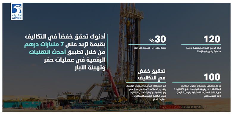 أدنوك تحقق خفضاً في التكاليف بقيمة تزيد على 7 مليارات درهم من خلال تطبيق أحدث التقنيات في عمليات حفر وتهيئة الآبار