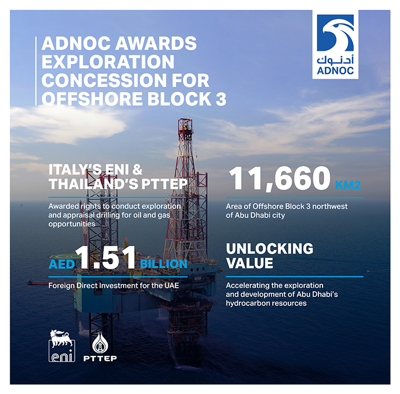 ADNOC Awards Eni and PTTEP Consortium the First Offshore Exploration Block in Abu Dhabi’s Second Competitive Block Bid Round