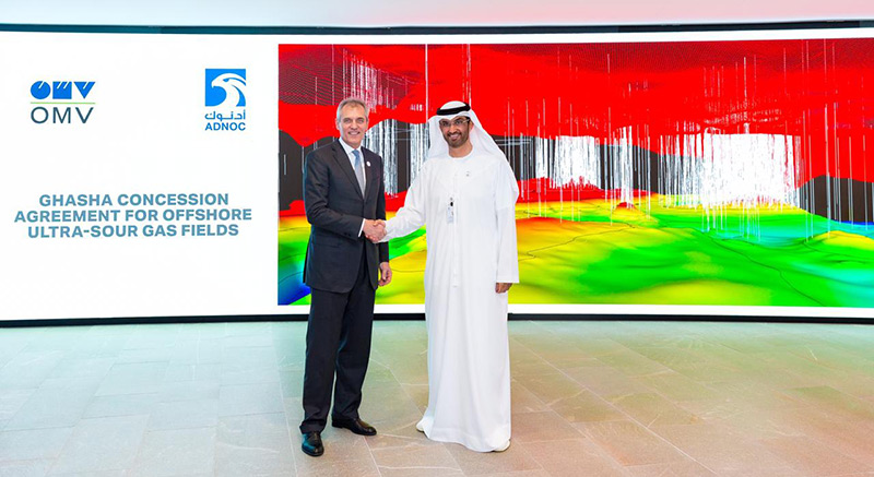 Abu Dhabi, UAE – December 19, 2018: The Abu Dhabi government and the Abu Dhabi National Oil Company (ADNOC) have awarded Austria’s OMV a 5 percent stake in the Ghasha ultra-sour gas concession that comprises the Hail, Ghasha, Dalma, Nasr, Sarb and Mubarraz sour gas fields.