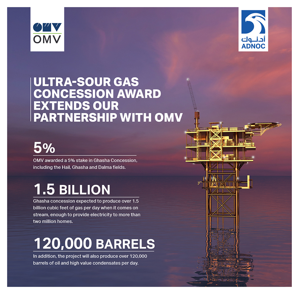 “This agreement builds on, and extends, our strong partnership with OMV, who we collaborate with in key areas across the oil and gas value chain. They bring extensive experience in sour gas operations, in Austria and Pakistan, and, like ADNOC, have a proven record working with mature and complex reservoirs. It will help ensure our investment, in the Ghasha concession, will maximize long-term returns for the benefit of ourselves, our partners and the nation.”