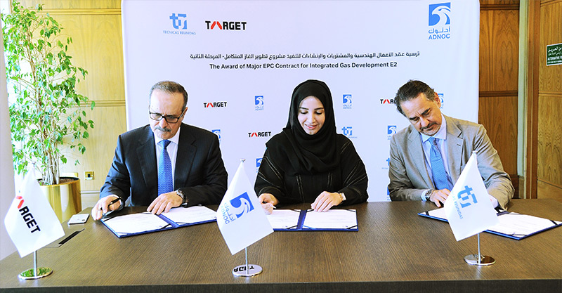 Abu Dhabi, United Arab Emirates – September 26, 2018: ADNOC LNG, a subsidiary of the Abu Dhabi National Oil Company (ADNOC), signed, today, the Engineering, Procurement and Construction (EPC) contract for the second phase of the Integrated Gas Development Expansion (IGD-E) project with a consortium of Spain's Tecnicas Reunidas and Abu Dhabi’s Target Engineering Construction Company. The contract is valued at AED 3.16 billion (US $860 million) of which around half will flow into the local economy through ADNOC’s focus on maximizing in-country value.