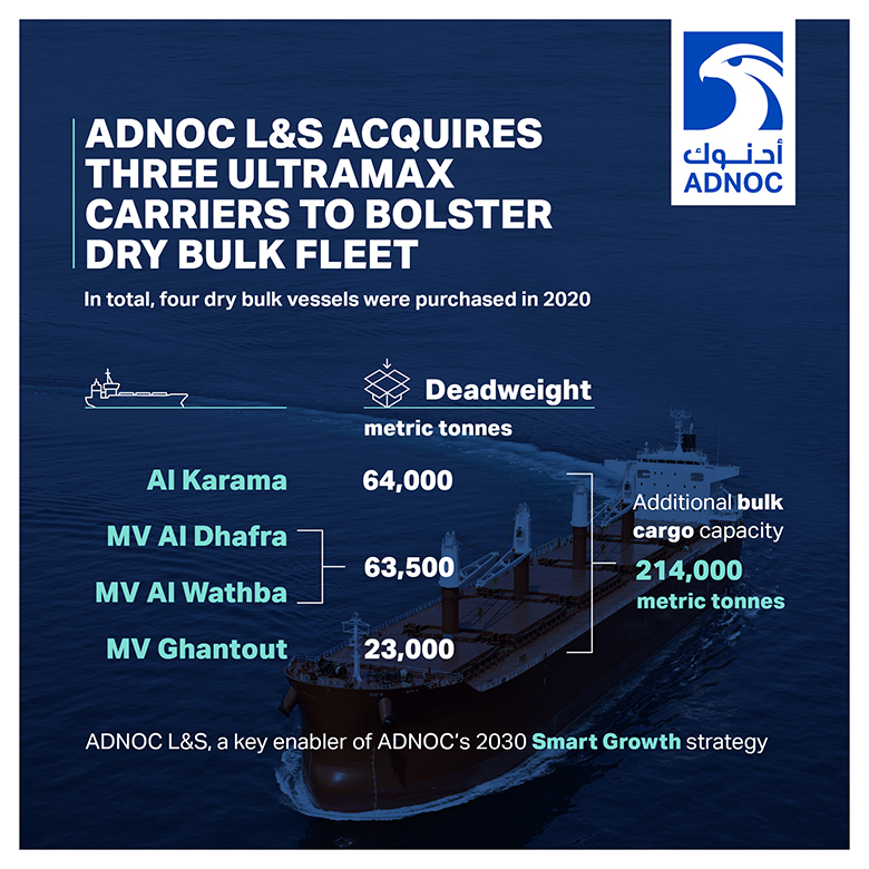 Acquisition means four dry bulk vessels have joined ADNOC’s L&S fleet in 2020 to meet growing customer demand