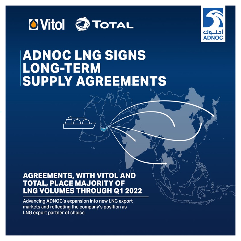 ADNOC LNG Signs Long-Term LNG Supply Agreements with Vitol and Total, Placing Majority of LNG Volumes through Q1 2022